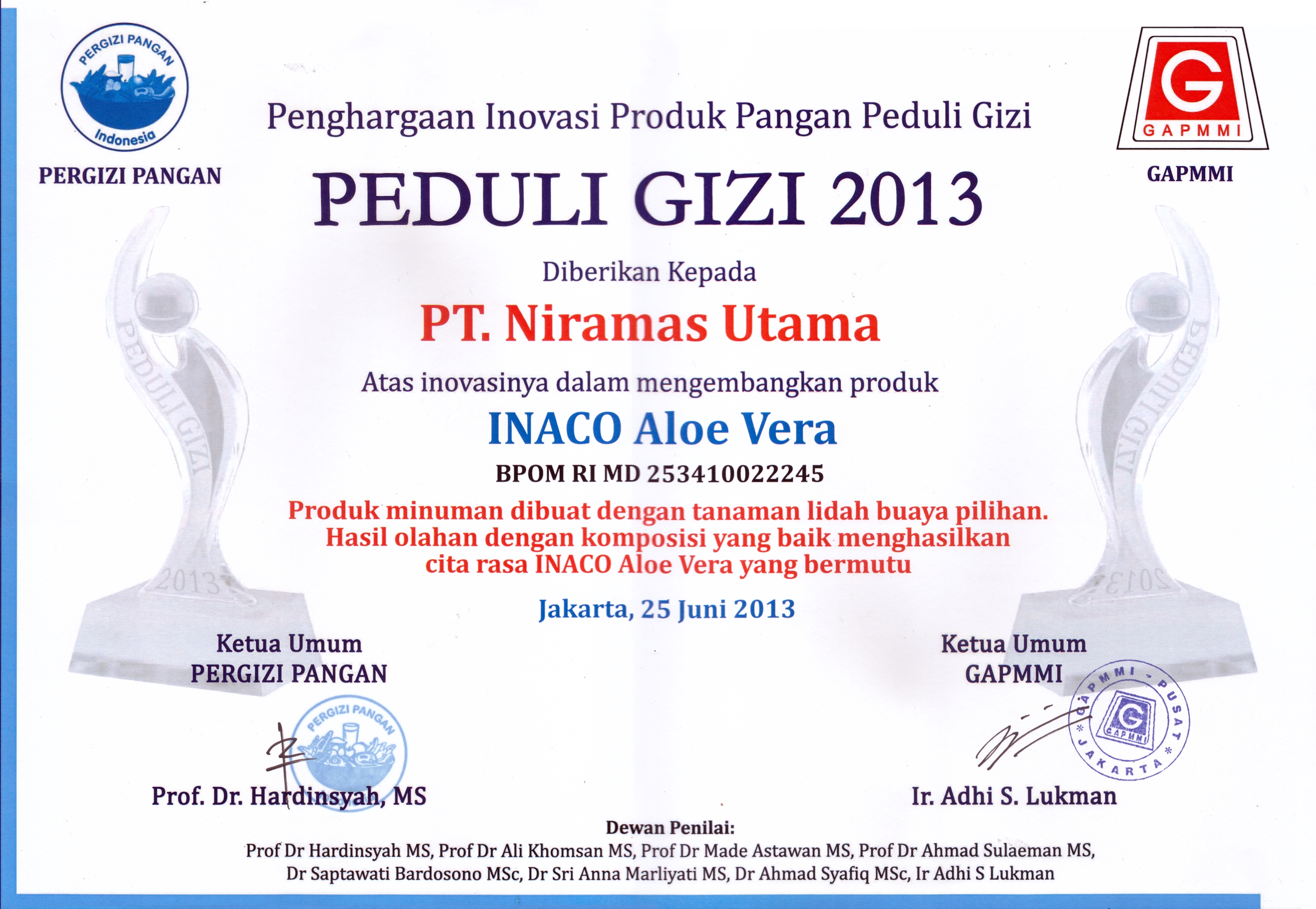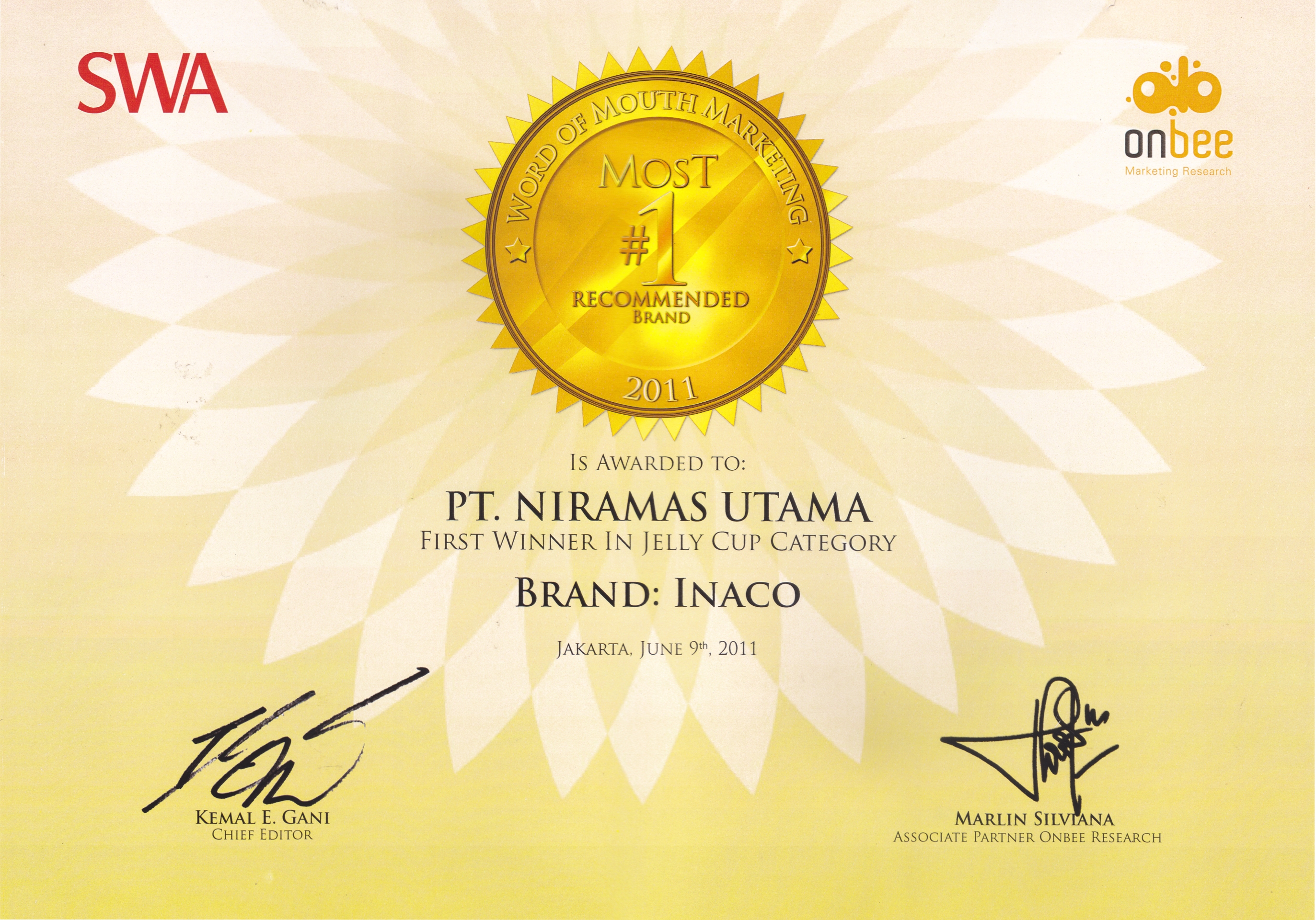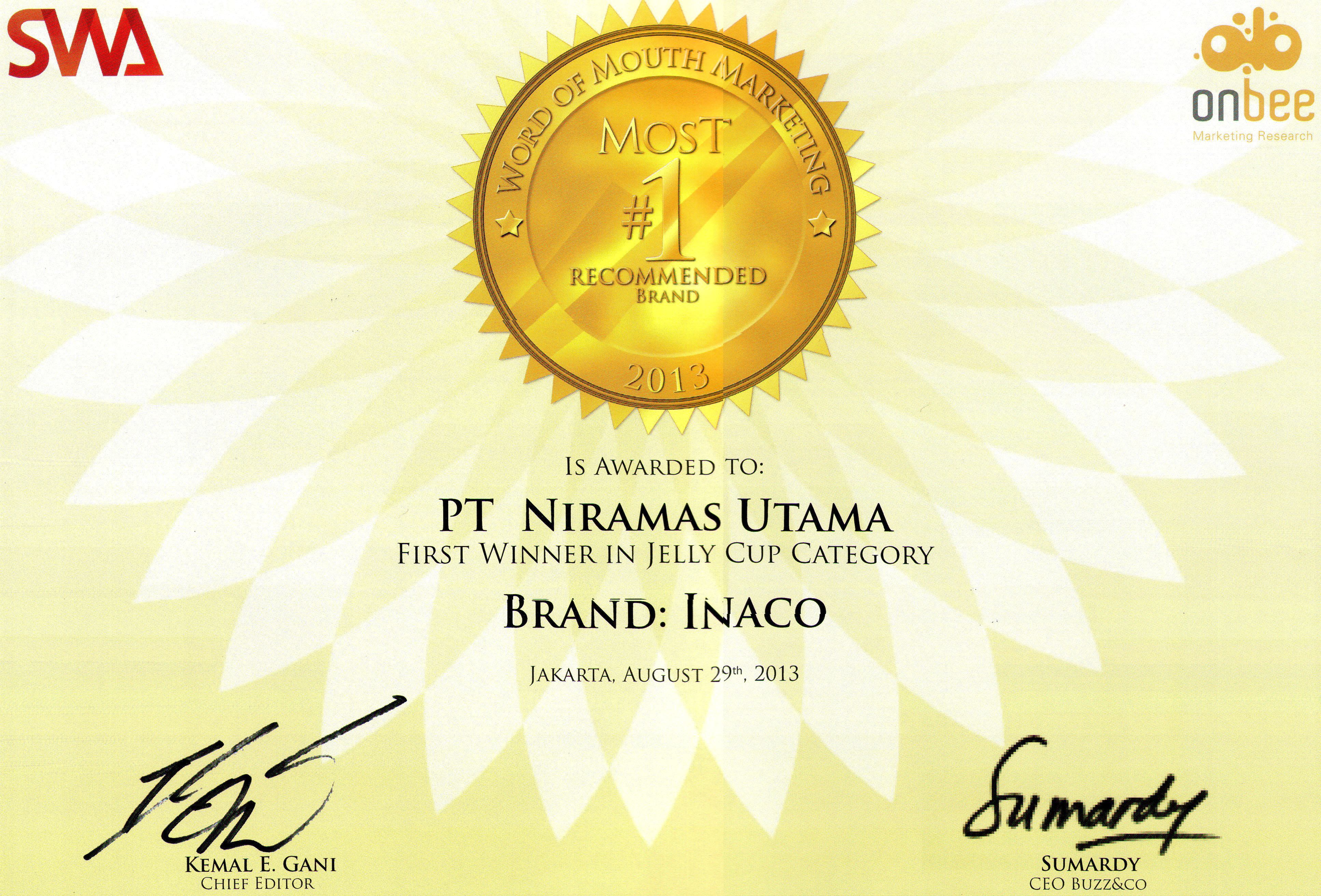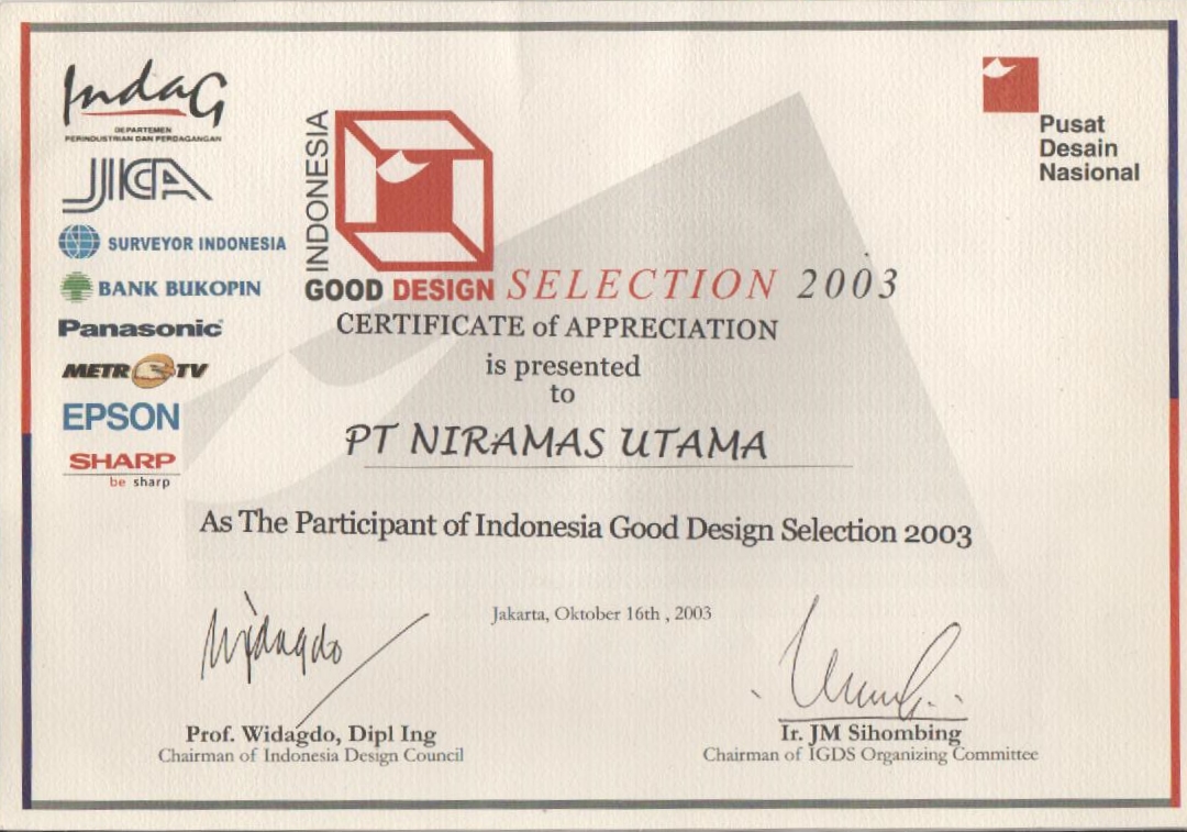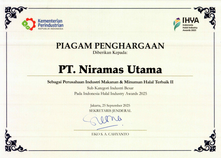 PT. Niramas Utama sangat bangga dengan komitmen kami untuk memproduksi produk yang berkualitas tinggi. Dedikasi kami ini telah menghasilkan banyak penghargaan dan pengakuan selama bertahun-tahun. Sebagaian penghargaan ini merupakan bukti dari upaya kami yang tiada henti untuk mencapai kualitas, inovasi, dan kepuasan pelanggan.